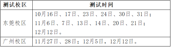 集中测试时间:测试日上午7:50,下午2:10。迟到者不予安排当天测试,请申请缓测。