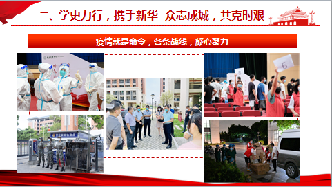 王阳副书记分两部分展开,一是学史力行,为群众解决实际问题;二是学史力行,携手新华,众志成城,共克时艰!
