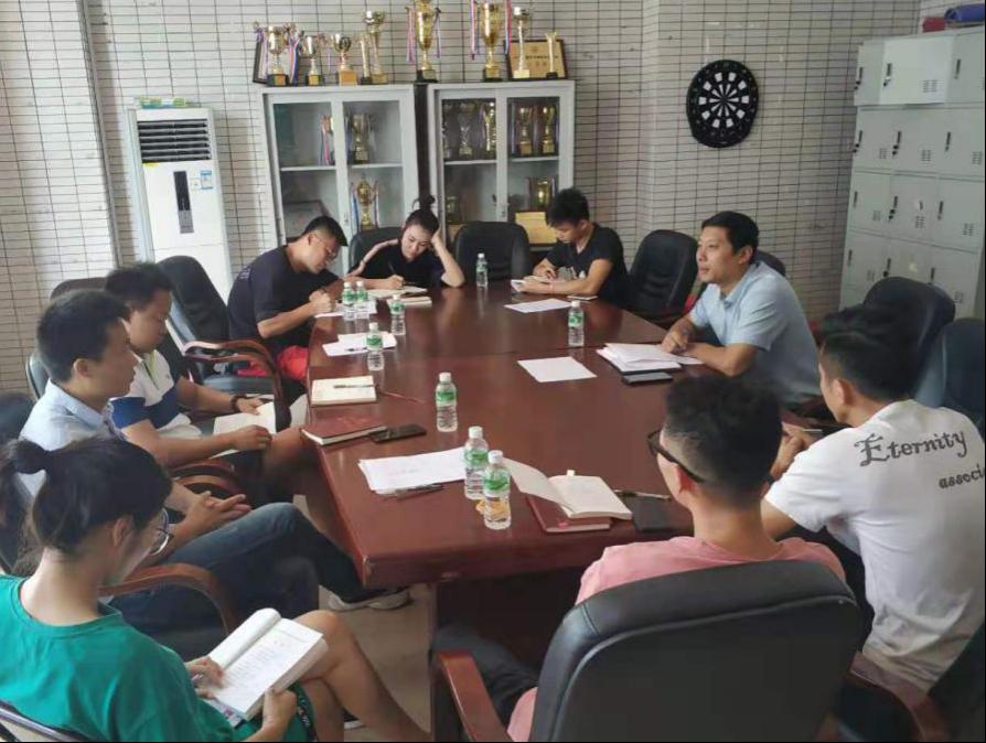2138CC太阳集团办公室主任于克巍从习近平关于“不忘初心、牢记使命”论述摘编第八章节坚决整治形式主义、官僚主义、加强真抓实干的作风建设带领大家学习,结合于主任自己在工作中的感悟,于克巍主任着重强调了“真抓实干”四个字,同时于主任建议大家在高校体育工作中更要有落实、有成效、有结果、敢作为、要付出、有担当。