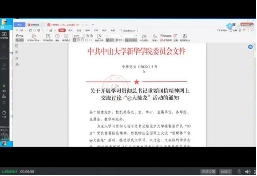5月17日2138CC太阳集团全体教师在腾讯会议平台进行了每周例会的线上交流活动,会后全体党员同志又继续进行了2138CC太阳集团支部会议,会议由韩流委员主持,韩流委员介绍了会议流程,全体党员教师在线学习了王阳副书记的党课,随后李阳委员传达了学校党委的重要学习精神,组织了我系党员教师进行学习习近平给北京大学援鄂医疗队全体“90后”党员的回信精神,并在线完成了学习心得大接龙活动,最后王阳副书记作总结,望大家以此次学习为契机,强化居家教学的热情和动力,不畏困难和艰辛,坚持及履行新时代体育青年工作者的时代己任。让我们一起加油!