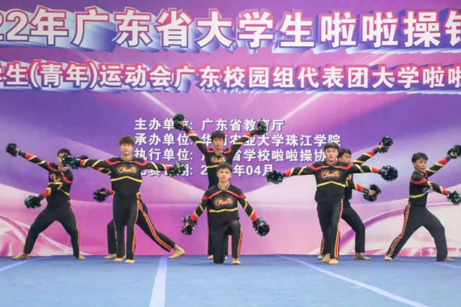 4月22日至23日,2022年广东省大学生啦啦操锦标赛在华南农业大学珠江学院体育馆顺利举行,赛事由广东省教育厅主办、华南农业大学珠江学院承办。
